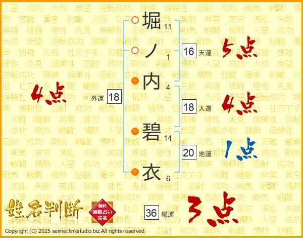 堀ノ内碧衣さんの外運は18画の4点!