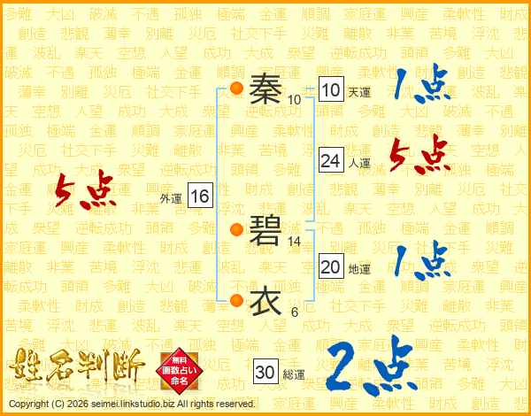 秦碧衣さんの総運は30画の2点!