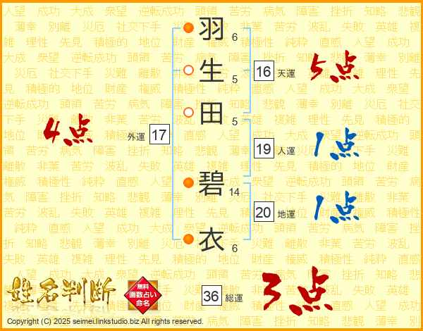 羽生田碧衣さんの天運は16画の5点!