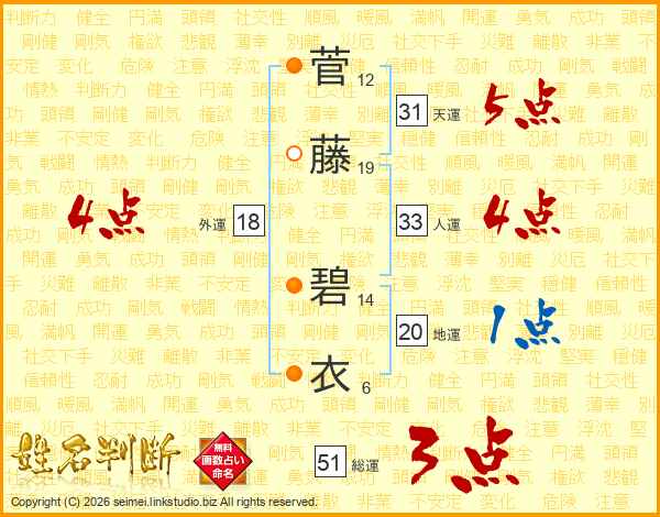 菅(12画)藤(19画) 碧(14画)衣(6画)