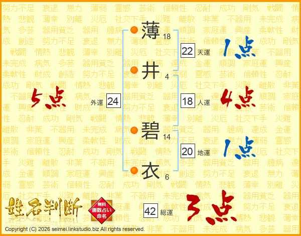 薄(18画)井(4画) 碧(14画)衣(6画)