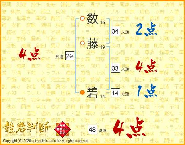 数藤碧さんの総運は48画の4点!