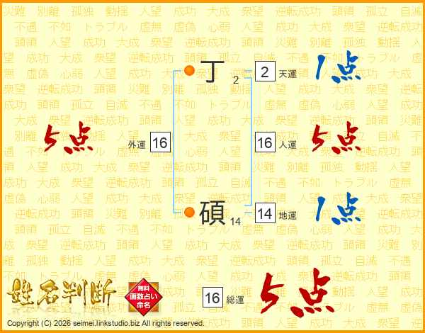 丁碩さんの総運は16画の5点!