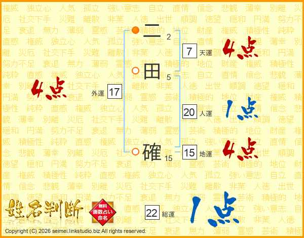 二田確さんの天運は7画の4点!