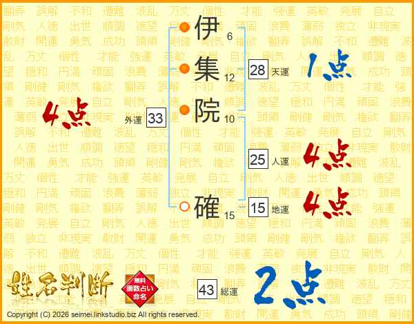 伊集院確さんの総運は43画の2点!