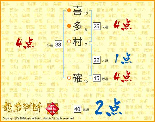喜多村確さんの天運は25画の4点!