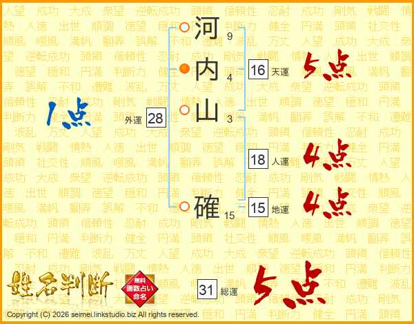 河内山確さんの総運は31画の5点!