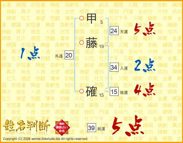 甲藤確さんの総運は39画の5点!