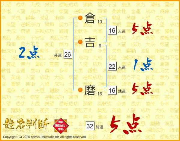 倉吉磨さんの総運は32画の5点!