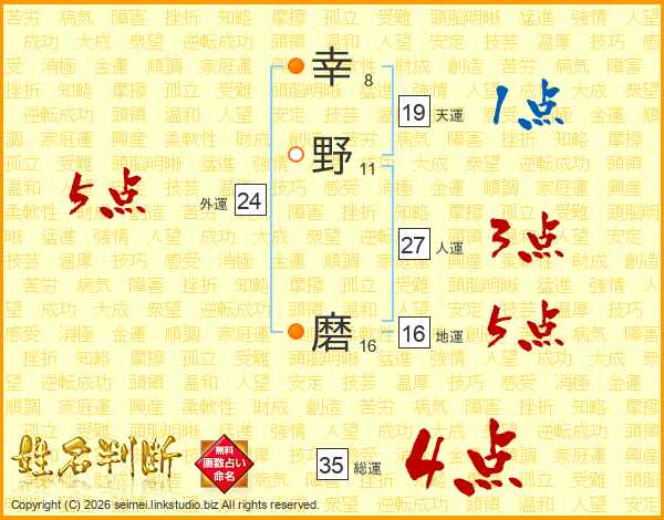 幸(8画)野(11画) 磨(16画)