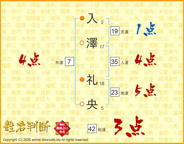 入澤礼央さんの人運は35画の4点!