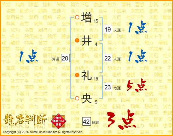 増(15画)井(4画) 礼(18画)央(5画)