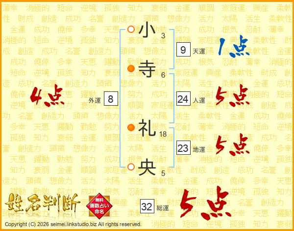 小寺礼央さんの総運は32画の5点!