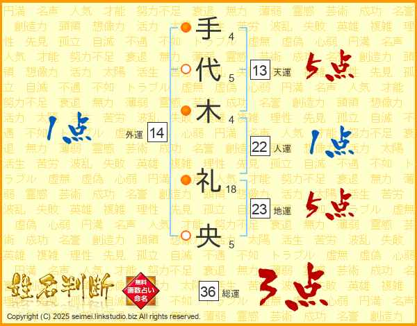 手代木礼央さんの総運は36画の3点!