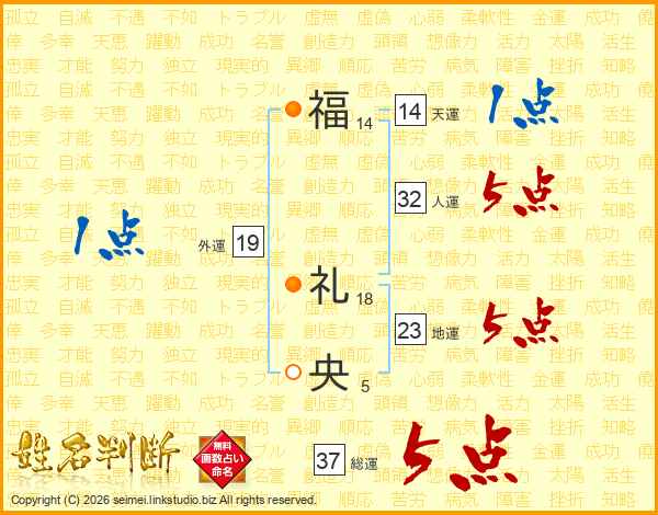 福礼央さんの総運は37画の5点!