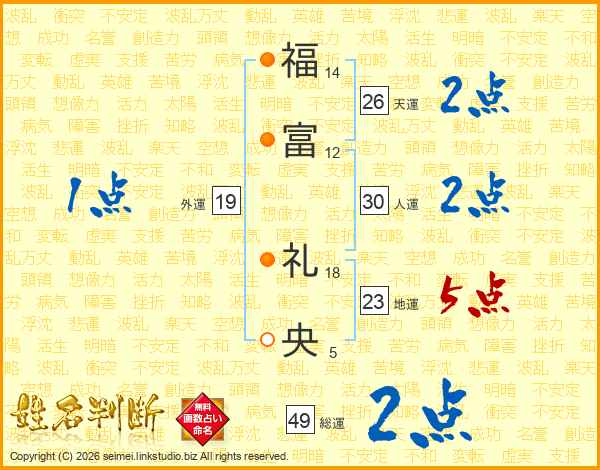 福富礼央さんの総運は49画の2点!