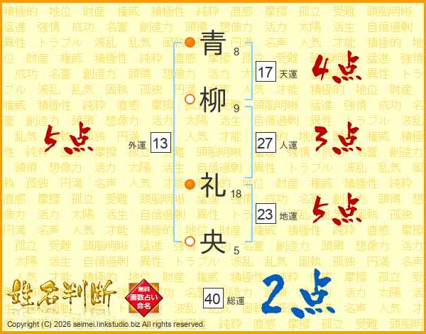 青柳礼央さんの総運は40画の2点!