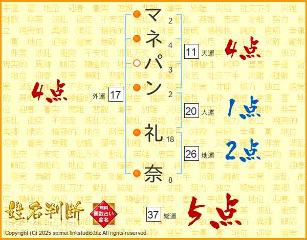 マネパン礼奈さんの総運は37画の5点!