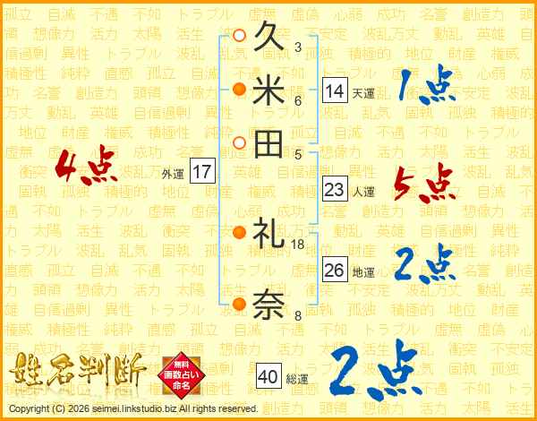 久米田礼奈さんの天運は14画の1点!