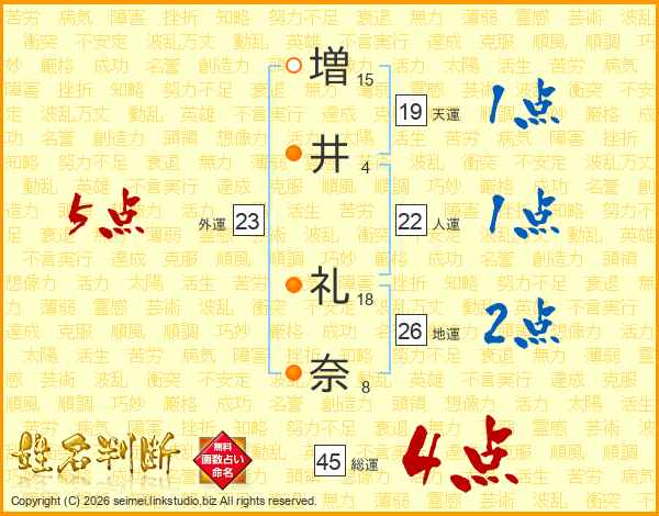 増(15画)井(4画) 礼(18画)奈(8画)
