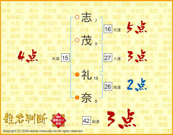 志(7画)茂(9画) 礼(18画)奈(8画)