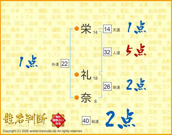 栄(14画) 礼(18画)奈(8画)