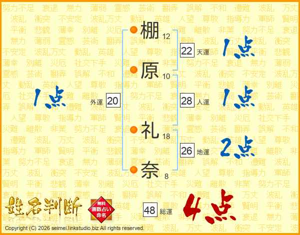 棚原礼奈さんの総運は48画の4点!