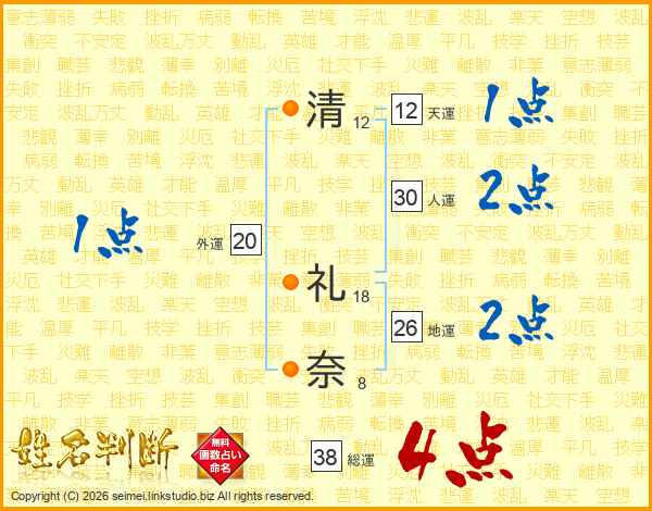 清礼奈さんの総運は38画の4点!