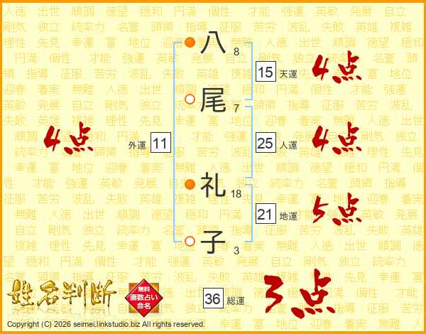 八(8画)尾(7画) 礼(18画)子(3画)