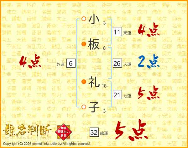 小板礼子さんの総運は32画の5点!