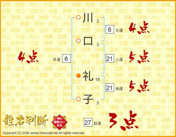 川(3画)口(3画) 礼(18画)子(3画)