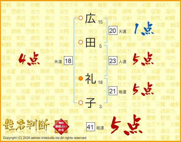 広田礼子さんの総運は41画の5点!