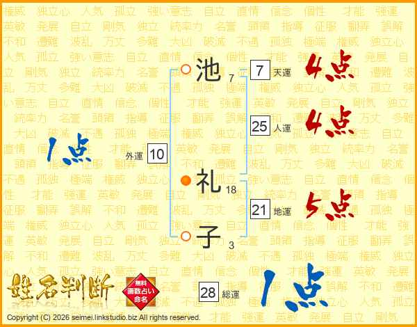 池礼子さんの天運は7画の4点!