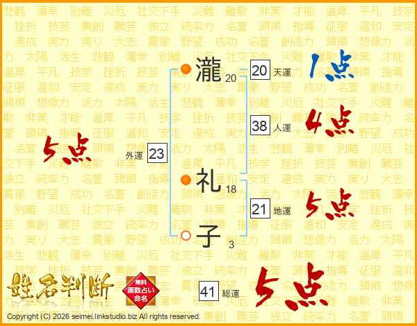 瀧礼子さんの総運は41画の5点!