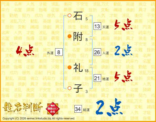 石附礼子さんの総運は34画の2点!