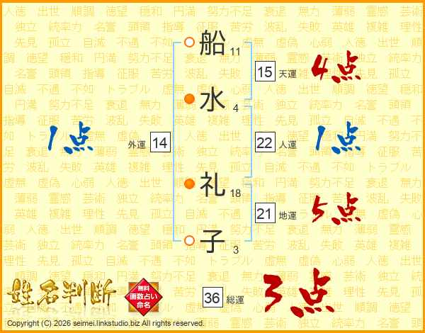 船水礼子さんの地運は21画の5点!