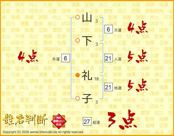 山下礼子さんの総運は27画の3点!