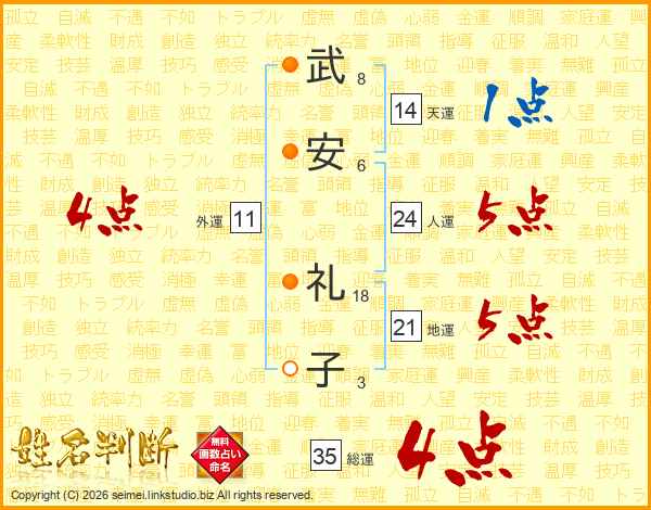 武安礼子さんの総運は35画の4点!