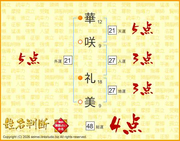 華咲礼美さんの総運は48画の4点!