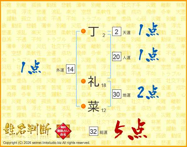 丁礼菜さんの総運は32画の5点!