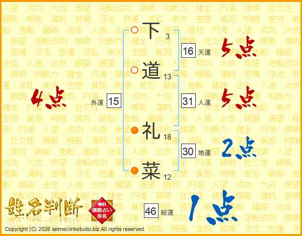 下道礼菜さんの総運は46画の1点!