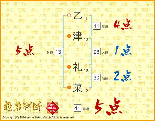 乙津礼菜さんの天運は11画の4点!