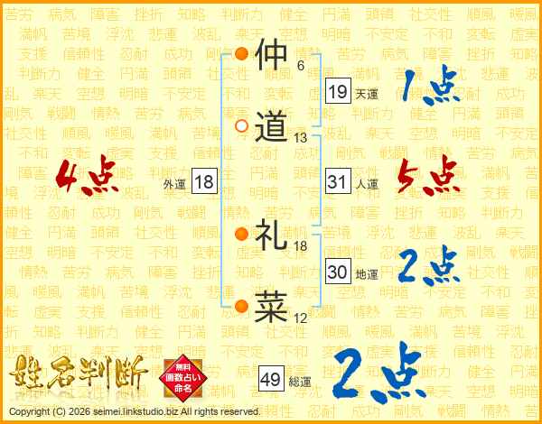 仲道礼菜さんの総運は49画の2点!