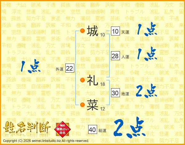 城礼菜さんの総運は40画の2点!