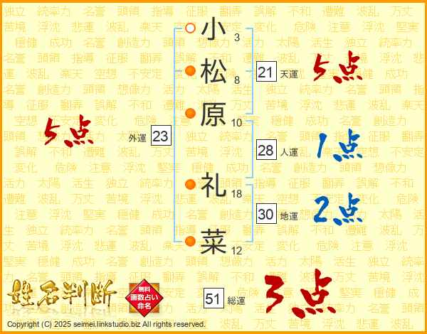小(3画)松(8画)原(10画) 礼(18画)菜(12画)