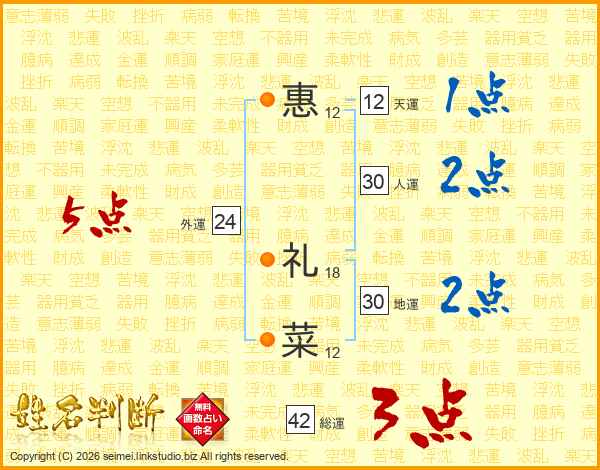 惠礼菜さんの外運は24画の5点!