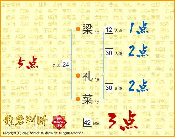 梁礼菜さんの総運は42画の3点!