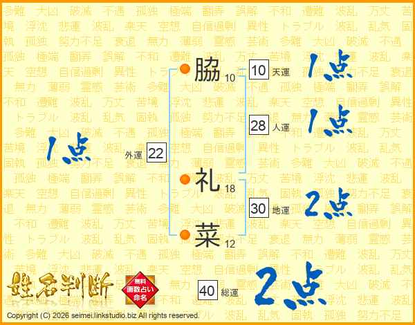 脇(10画) 礼(18画)菜(12画)