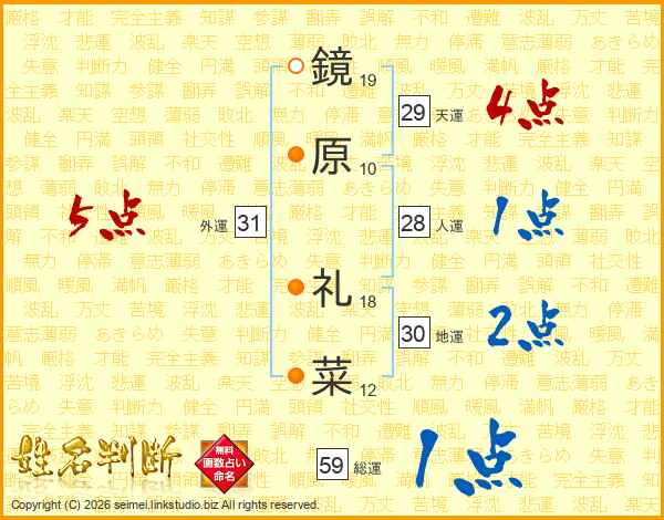 鏡原礼菜さんの総運は59画の1点!