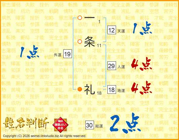 一条礼さんの総運は30画の2点!